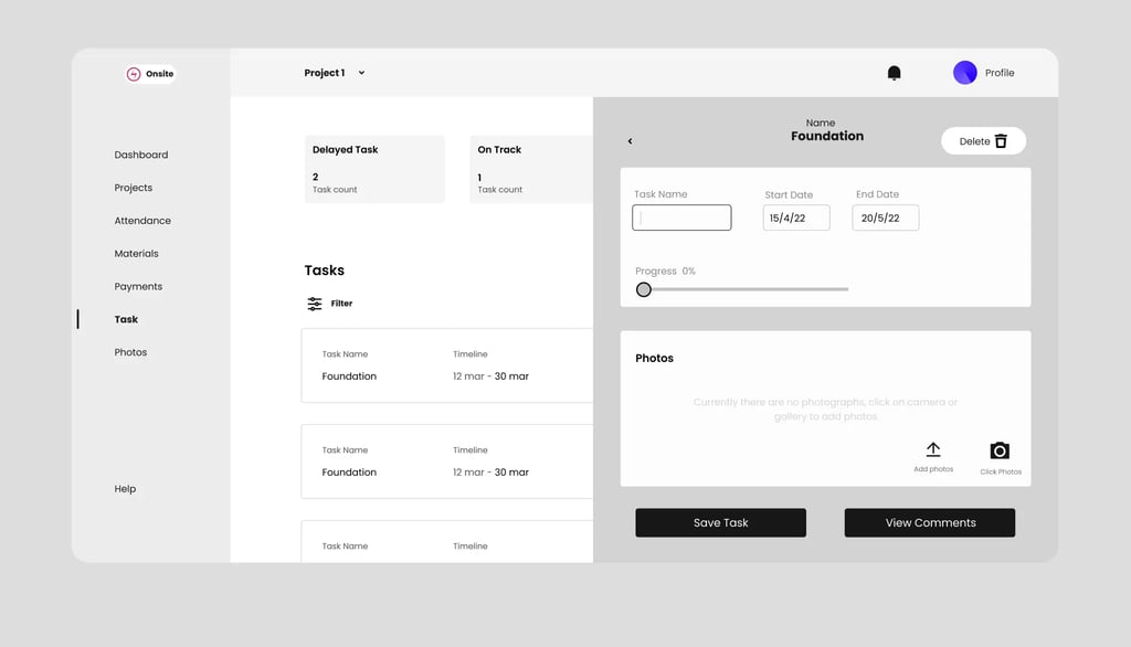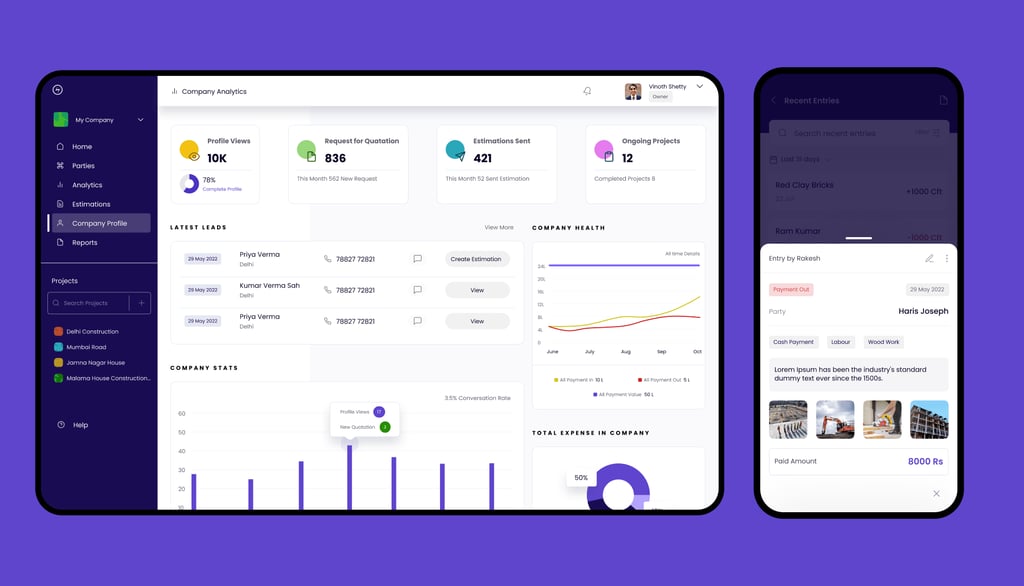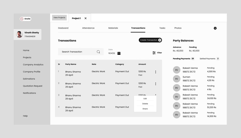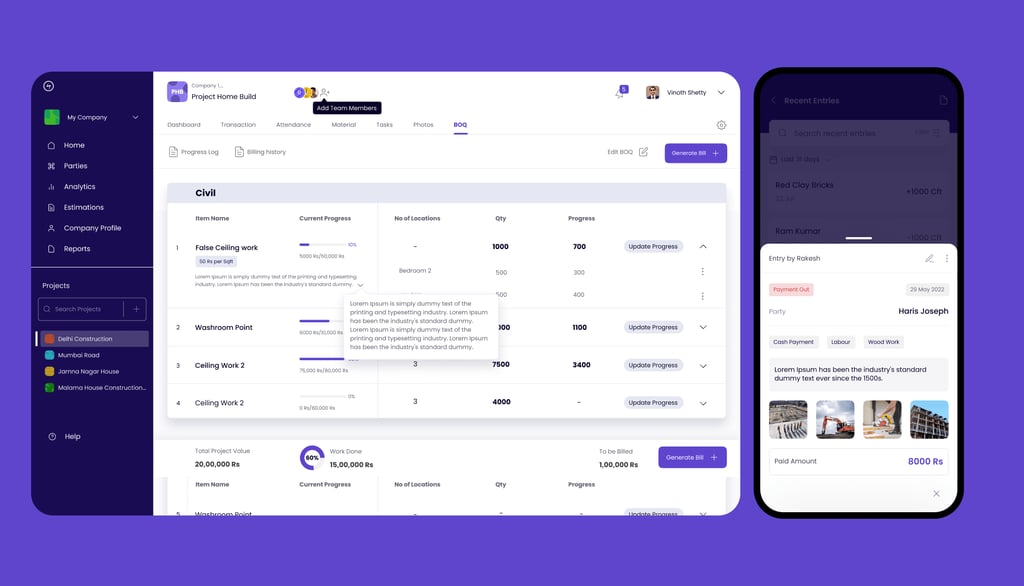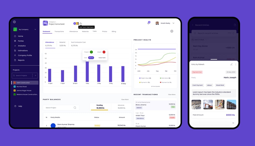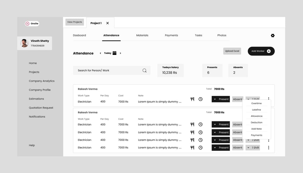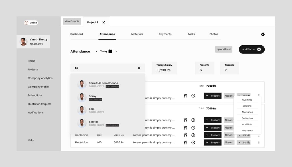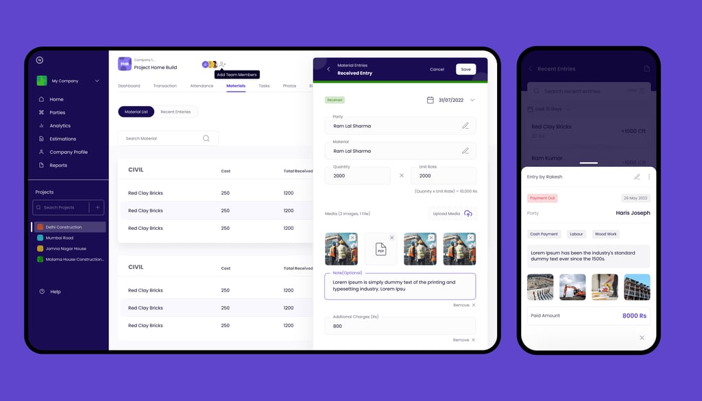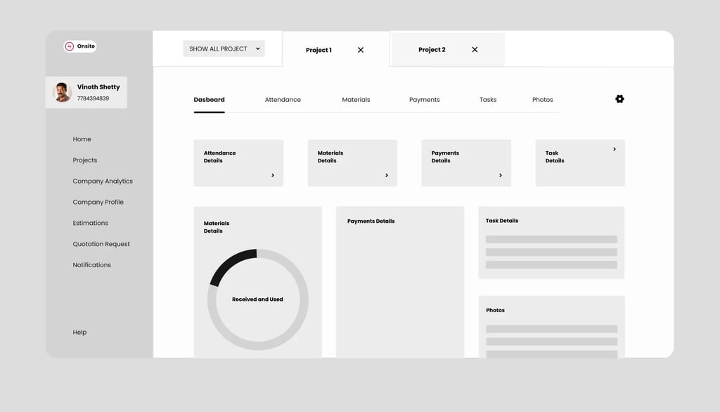 Onsite Teams is a unified construction management platform built for small and mid-sized businesses in India. The platform digitizes operations such as task assignments, labor tracking, material management, and daily expenses, helping companies streamline field operations and decision-making. This project gave me the opportunity to redesign a real-world tool used by construction professionals, most of whom have minimal exposure to digital workflows. The challenge was not only to improve usability but to introduce trust and familiarity into a space that typically resists change.