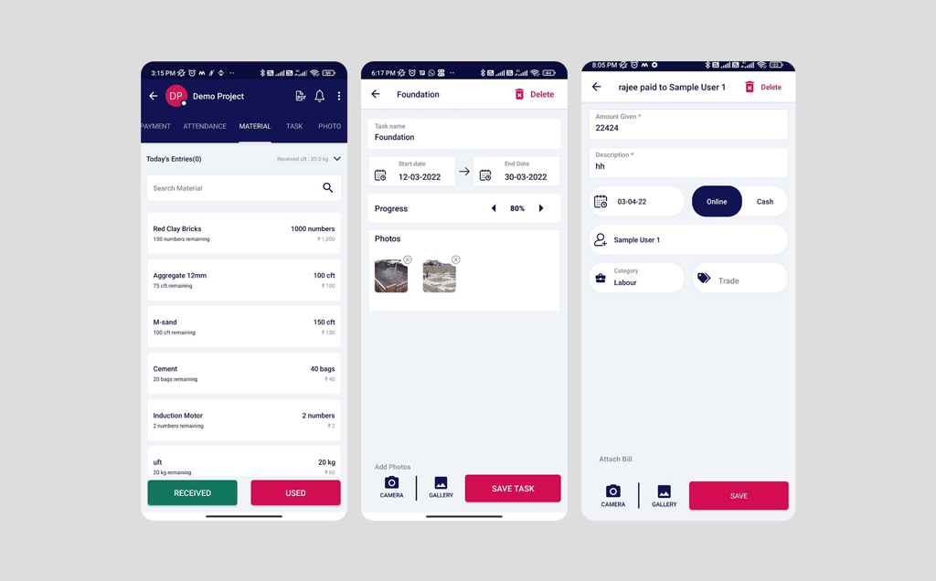 Project Managers: Sought ease in updating material movement, tasks, and site status